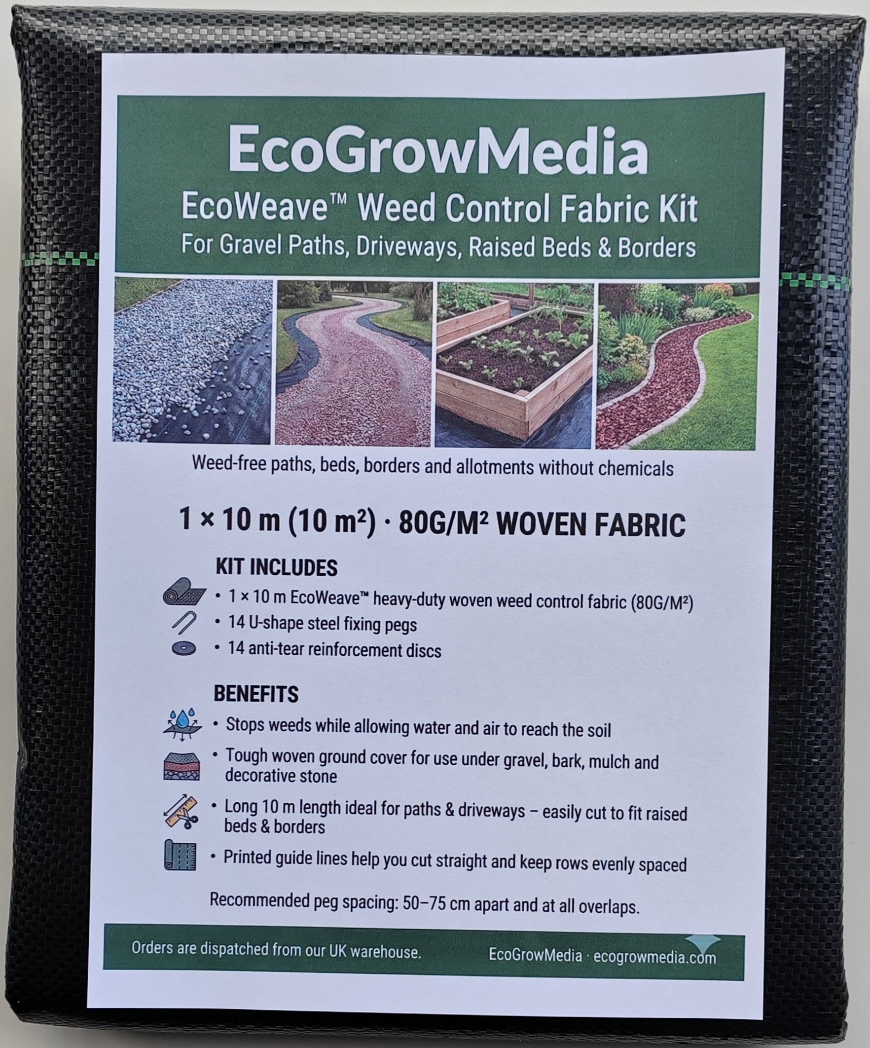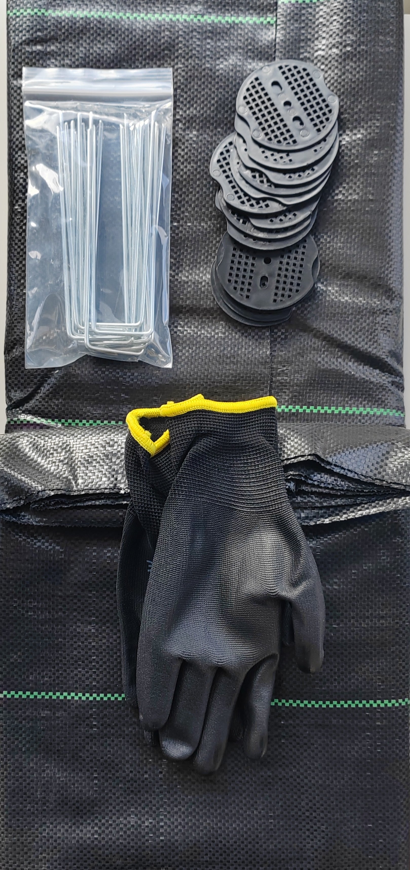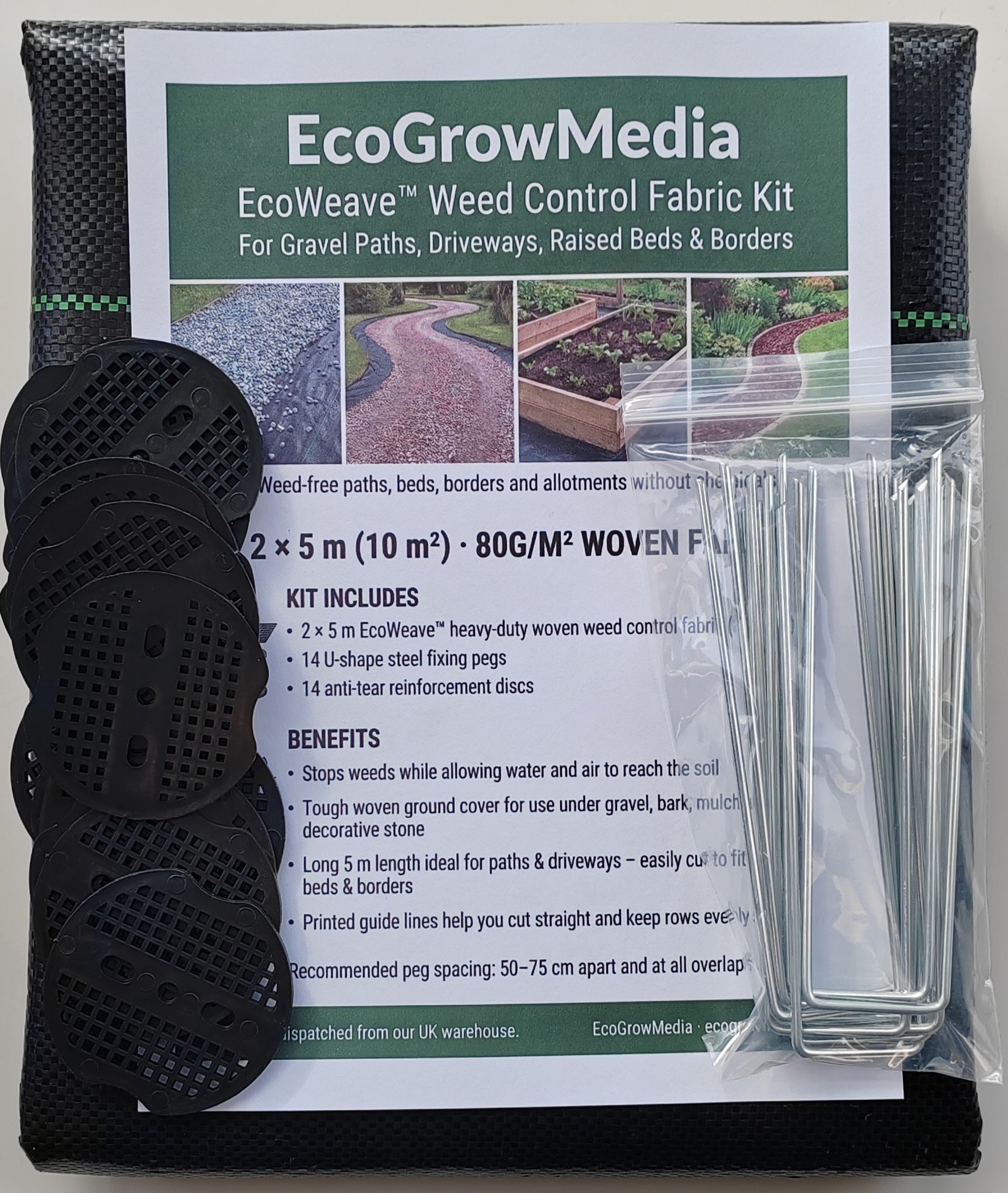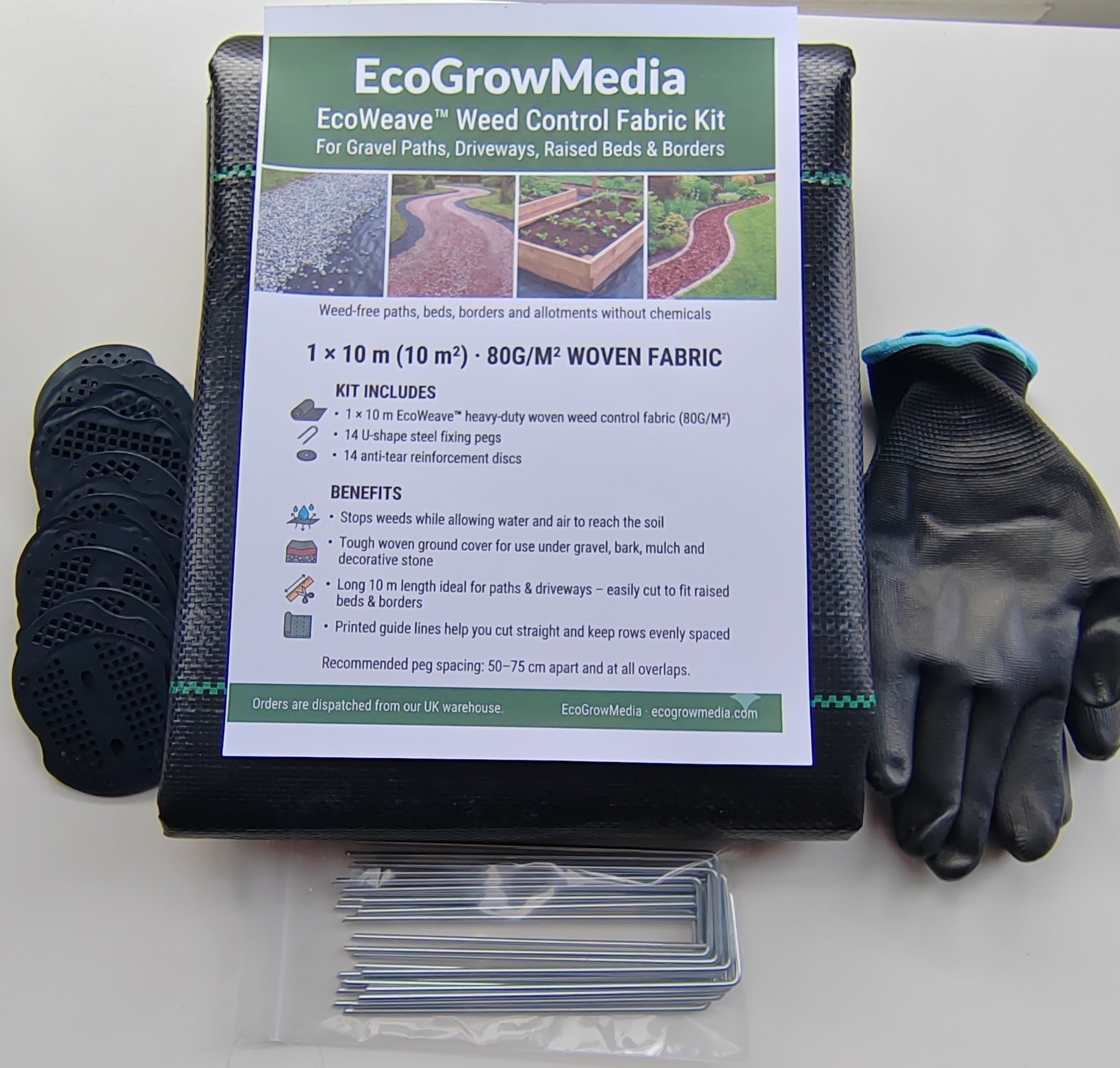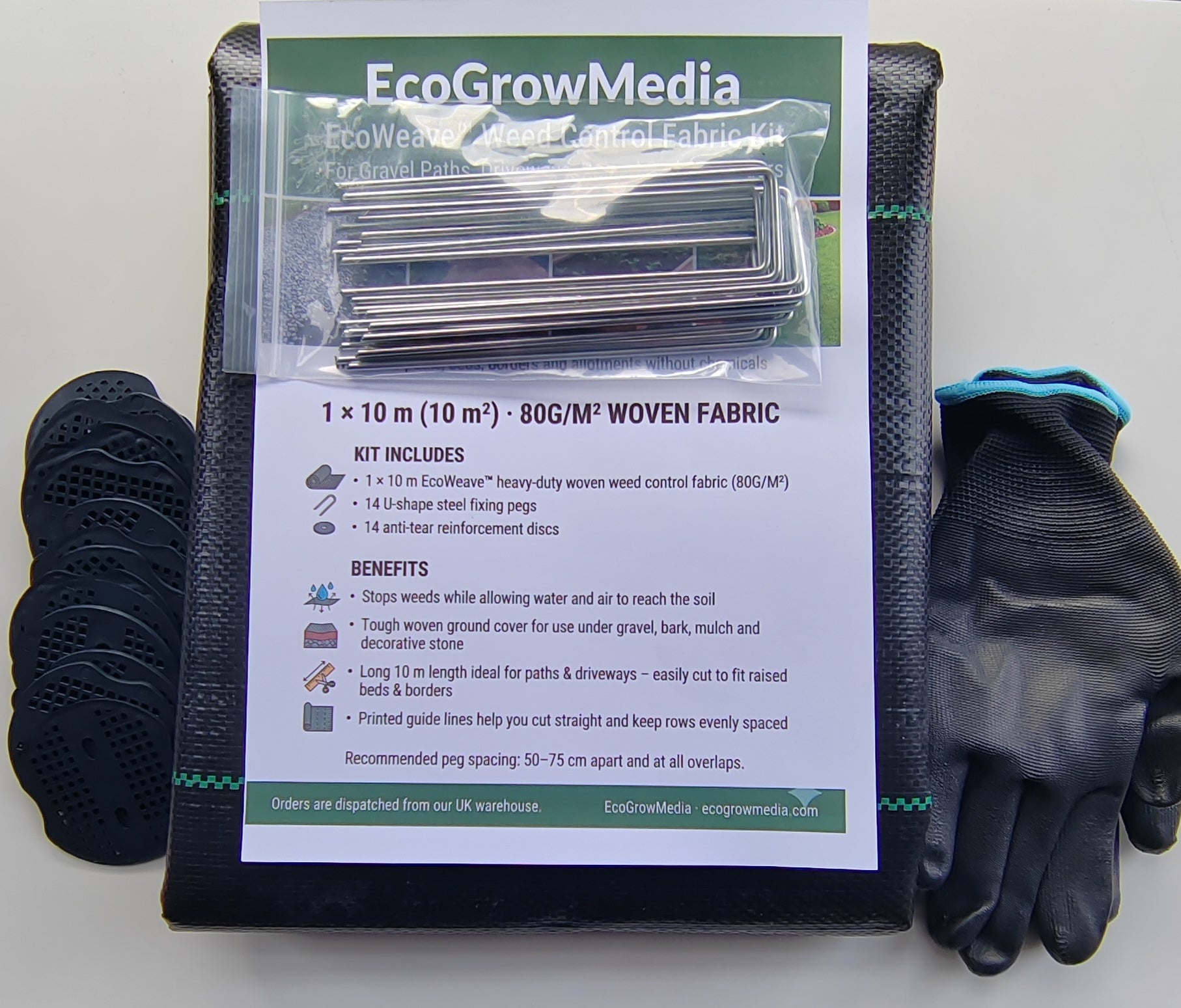 Heavy Duty Weed Control Fabric 80gsm - 1×10M – Complete Ground-Cover Kit with 14 Pegs & 14 Discs