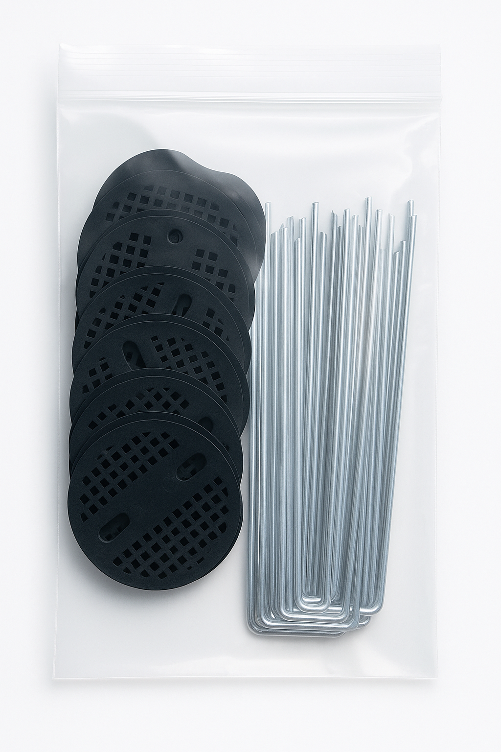 Includes steel fixing pegs and anti-tear discs – full installation kit.